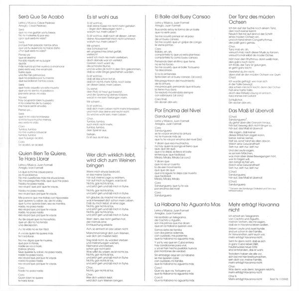 An original printed inner sleeve with song lyrics in Spanish and German translation is included.