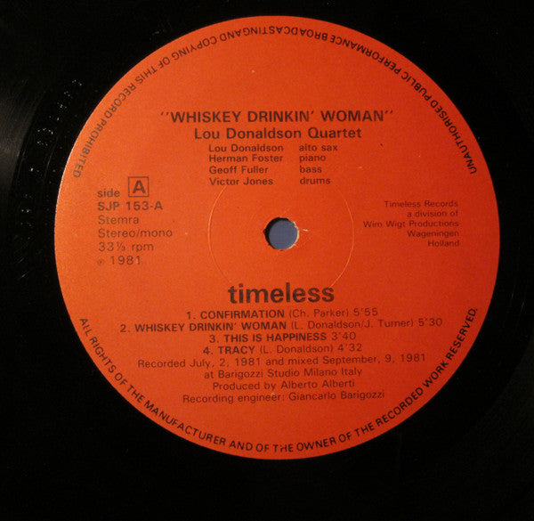 On side A label, A2 is Spelled: Whiskey Drinkin' Woman
