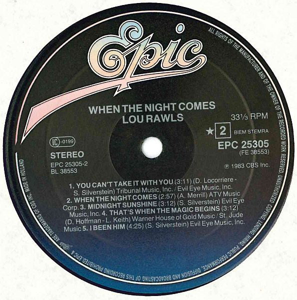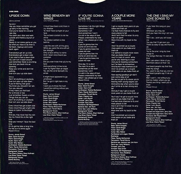 A1. Upside Down 3:34 A2. The Wind Beneath My Wings 3:53 A3. If You're Gonna Love Me 2:36 A4. A Couple More Years 3:44 A5. The One I Sign My Love Songs To 3:27 B1. You Can't Take It With You 3:11 B2. When The Night Comes 2:57 B3. Midnight Sunshine 3:12 B4. That's When The Magic Begins 3:12 B5. I Been Him 4:25