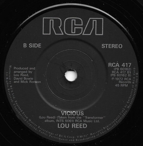Phonographic Copyright (p) RCA Records Marketed By RCA Ltd. Distributed By RCA Ltd. Copyright (c) RCA Ltd. Produced For Sister Ray Enterprises Inc Pressed By Spartan Manufacturing Ltd.