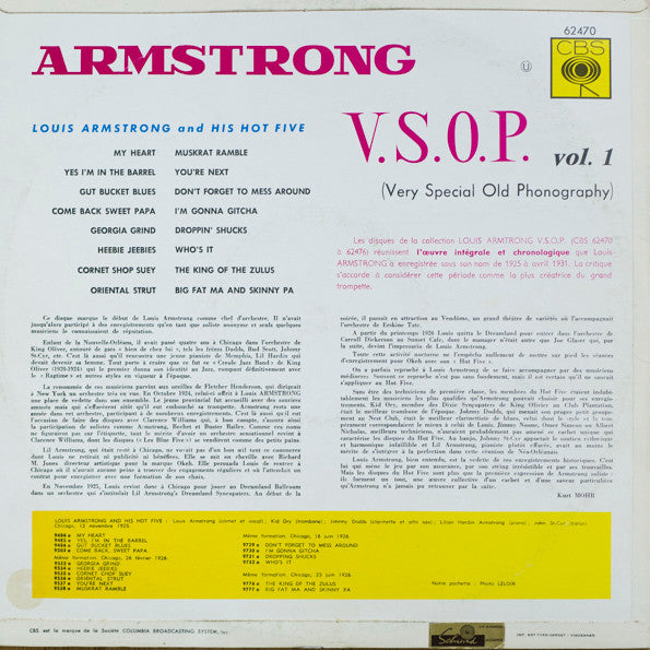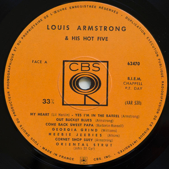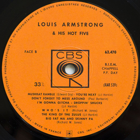 A1. Louis Armstrong & His Hot Five - My Heart A2. Louis Armstrong & His Hot Five - Yes I'm In The Barrel A3. Louis Armstrong & His Hot Five - Gut Bucket Blues A4. Louis Armstrong & His Hot Five - Come Back Sweet Papa A5. Louis Armstrong & His Hot Five - Georgia Grind A6. Louis Armstrong & His Hot Five - Heebie Jeebies A7. Louis Armstrong & His Hot Five - Cornet Shop Suey A8. Louis Armstrong & His Hot Five - Oriental Strut B1. Louis Armstrong & His Hot Five - Muskrat Ramble B2. Louis Armstrong & His Hot Five - You're Next B3. Louis Armstrong & His Hot Five - Don't Forget To Mess Around B4. Louis Armstrong & His Hot Five - I'm Gonna Gitcha B5. Louis Armstrong & His Hot Five - Droppin'Shucks B6. Louis Armstrong & His Hot Five - Who's It B7. Louis Armstrong & His Hot Five - The King Of The Zulus B8. Louis Armstrong & His Hot Five - Big Fat Ma And Skinny Pa