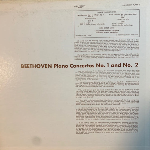 . Piano Concerto No. 1 In C Major, Op. 15 . Piano Concerto No. 2 In B Flat Major, Op. 19