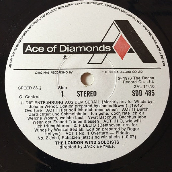 Ensemble is called "The London Wind Soloists" on the front of the sleeve and on the labels, but "The London Wind Ensemble" on the back of the sleeve
