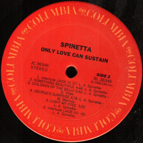 A1. Who's To Blame 4:34 A2. Only Love Can Sustain 2:43 A3. Love Once, Love Twice, Then Love Again 4:24 A4. Omens Of Love 3:34 A5. Interlude (Jade I) 0:53 B1. Interlude (Jade II) 0:27 B2. Something Beautiful 4:48 B3. Children Of The Bells 5:52 B4. George's Surprise 4:18 B5. Light My Eyes 5:32 B6. Interlude (Jade III) 0:50