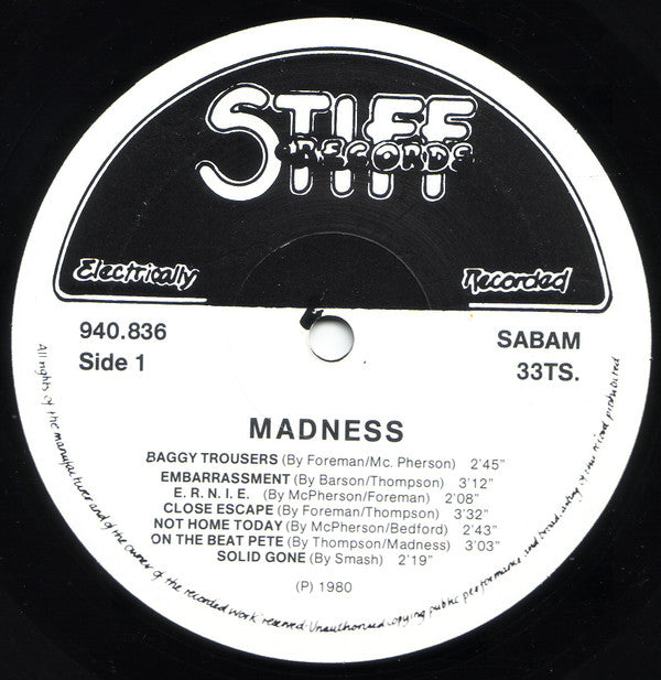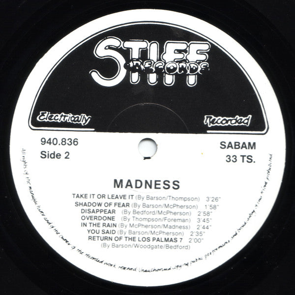A1. Baggy Trousers 2:45 A2. Embarrassment 3:13 A3. E.R.N.I.E. 2:08 A4. Close Escape 3:29 A5. Not Home Today 2:30 A6. On The Beat Pete 3:05 A7. Solid Gone 2:22 B1. Take It Or Leave It 3:26 B2. Shadow Of Fear 1:58 B3. Disappear 2:58 B4. Overdone 3:45 B5. In The Rain 2:42 B6. You Said 2:35 B7. Return Of Los Palmas 7 1:57