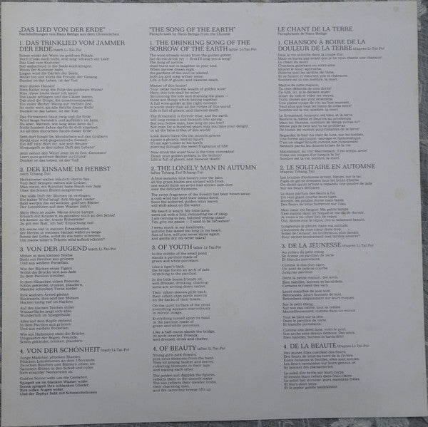Sleeve back: Gesangtexte auf Einsteckkarte (in German, English and French, translated from Chinese)