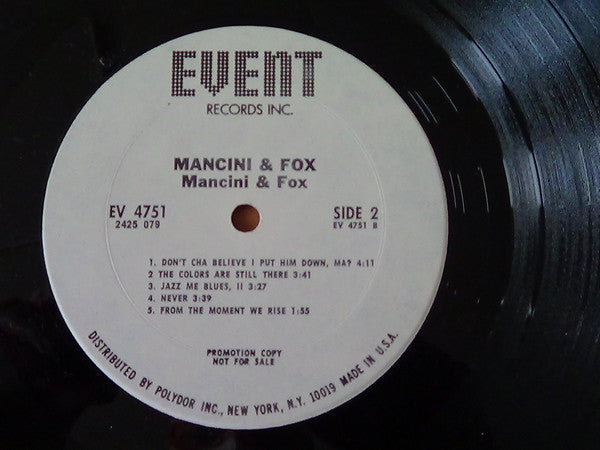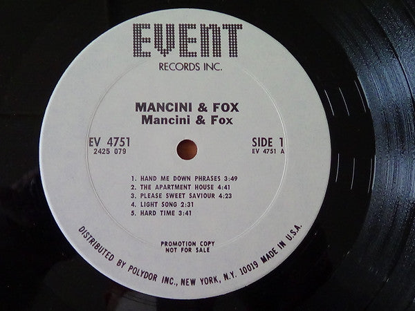 Promo copy: black lettering on white labels. PROMOTION COPY NOT FOR SALE stamped on labels.