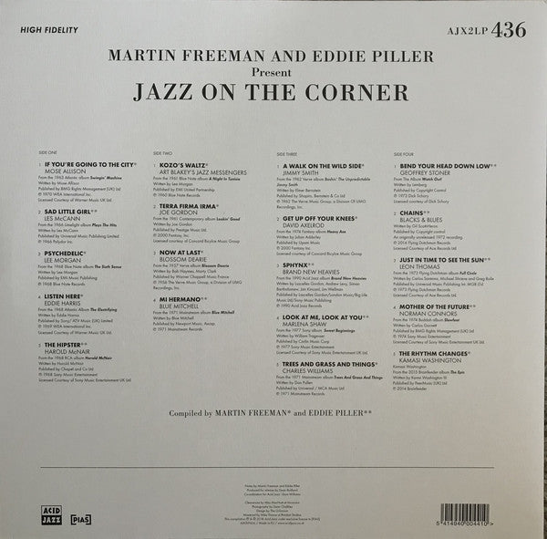 A1. Mose Allison - If You’re Going To The City 3:47 A2. Les McCann - Sad Little Girl 2:52 A3. Lee Morgan - Psychedelic 6:32 A4. Eddie Harris - Listen Here 7:37 A5. Harold McNair - The Hipster 4:37 B1. Art Blakey & The Jazz Messengers - Kozo’s Waltz 6:49 B2. Joe Gordon - Terra Firma Irma 7:42 B3. Blossom Dearie - Now At Last 3:20 B4. Blue Mitchell - Mi Hermano 5:24 C1. Jimmy Smith - A Walk On The Wild Side 5:57 C2. David Axelrod - Get Up Off Your Knees 3:38 C3. The Brand New Heavies - Sphynx 6:13 C4. Marlena Shaw - Look At Me, Look At You 4:01 C5. Charles Williams (15) - Trees And Grass And Things 4:33 D1. Geoffrey Stoner - Bend Your Head Down Low 3:58 D2. Black & Blues (2) - Chains 3:26 D3. Leon Thomas - Just In Time To See The Sun 2:59 D4. Norman Connors - Mother Of The Future 6:50 D5. Kamasi Washington - The Rhythm Changes 7:44