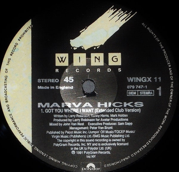 Marva Hicks - I Got You Where I Want (12")
