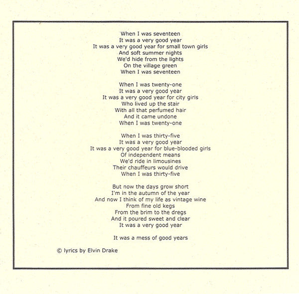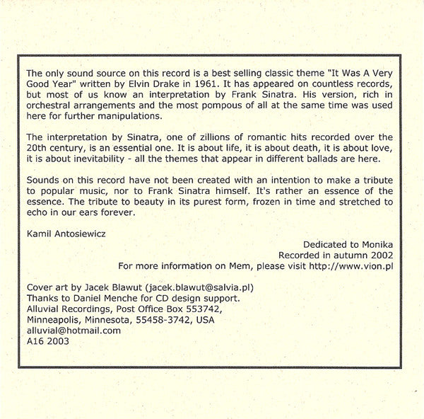Recorded in autumn 2002 using only the classic theme "It Was A Very Good Year" by Frank Sinatra.