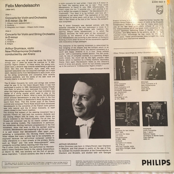 Felix Mendelssohn-Bartholdy - Arthur Grumiaux, New Philharmonia Orchestra, Jan Krenz
