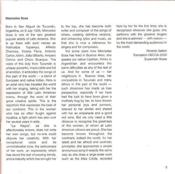 . Misa Criolla 1. Kyrie 2. Gloria 3. Credo 4. Sanctus 5. Agnus Dei . Navida Nuestra 6. La Anunciación 7. La Peregrinación 8. El Nacimiento 9. Los Pastores 10. Los Reyes Magos 11. La Huida