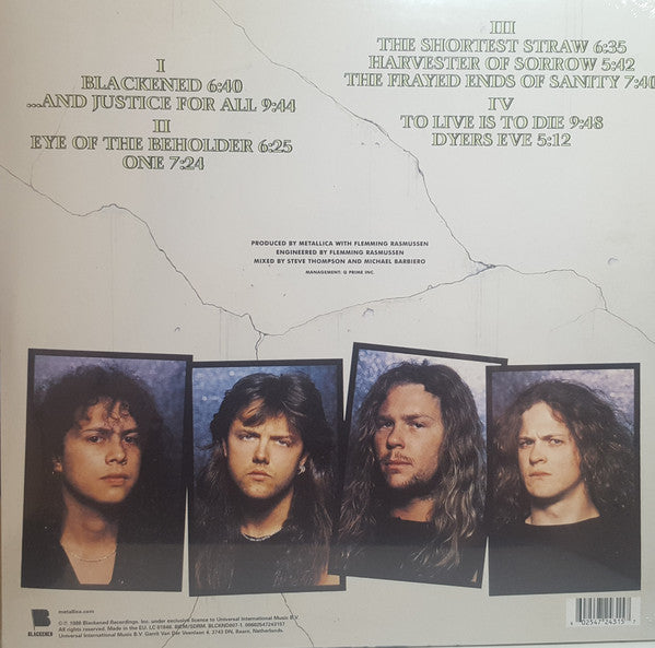 A1. Blackened 6:40 A2. ...And Justice For All 9:44 B1. Eye Of The Beholder 6:25 B2. One 7:24 C1. The Shortest Straw 6:35 C2. Harvester Of Sorrow 5:42 C3. The Frayed Ends Of Sanity 7:40 D1. To Live Is To Die 9:48 D2. Dyers Eve 5:12
