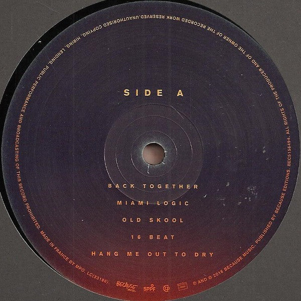 A1. Back Together A2. Miami Logic A3. Old Skool A4. 16 Beat A5. Hang Me Out To Dry B1. Mick Slow B2. My House B3. Night Owl B4. Love's Not an Obstacle B5. Summer Jam 1. Back Together 2. Miami Logic 3. Old Skool 4. 16 Beat 5. Hang Me Out To Dry 6. Mick Slow 7. My House 8. Night Owl 9. Love's Not an Obstacle 10. Summer Jam
