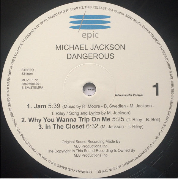 Pressed By Record Industry Phonographic Copyright (p) MJJ Productions Inc. Copyright (c) MJJ Productions Inc. Phonographic Copyright (p) Sony Music Entertainment Copyright (c) Sony Music Entertainment Manufactured By Music On Vinyl B.V. Distributed By Music On Vinyl B.V. Manufactured For Sony Music Entertainment Record Company MJJ Productions Inc. Published By Donril Music Published By Zomba Enterprises, Inc. Published By Wb Music Corp. Published By B-Funk Music Published By Mijac Music Published By Warner-Tamerlane Publishing Corp. Published By Rene Moore Music Inc. Published By Bruce Swedien Publishing Published By Ignorant Music Published By MCA Music Publishing Published By MCA Inc. Published By Aerostation Corporation Published By Heebeedooinit Music Published By Black Chick Music Published By Fiddleback Music Publishing Co. Inc. Published By New Start Music Inc. Published By Smith-Hemion Music Inc. Published By One Zee Music Recorded At Ocean Way Recording Recorded At Record One, Los Angeles Recorded At Larrabee Sound Studios Recorded At Westlake Audio Recorded At Smoketree Ranch Recorded At Toad Hall Studio Recorded At Record Plant, Los Angeles Mastered At Bernie Grundman Mastering