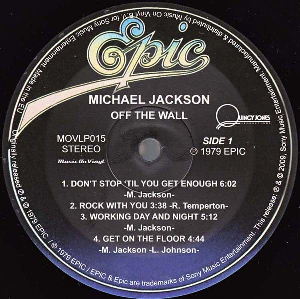 A1. Don't Stop 'Til You Get Enough 6:02 A2. Rock With You 3:38 A3. Working Day And Night 5:12 A4. Get On The Floor 4:44 B1. Off The Wall 4:04 B2. Girlfriend 3:04 B3. She's Out Of My Life 3:36 B4. I Can't Help It 4:27 B5. It's The Falling In Love 3:46 B6. Burn This Disco Out 3:38