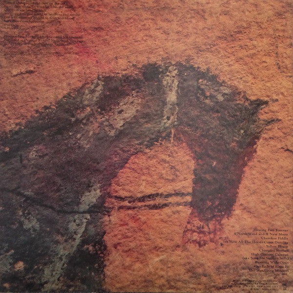 A1. Flowing Free Forever 4:11 A2. A North Wind And A New Moon 4:51 A3. Cherokee Fiddle 3:28 A4. See How All The Horses Come Dancing 4:32 A5. Yellow House 5:11 B1. Changing Woman 4:03 B2. High Country Caravan (Aka Song For Stephen Stills) 4:33 B3. Running Wide Open 3:22 B4. Our Lady Of Sante Fe 2:25 B5. The Wandering Minstrel 5:24
