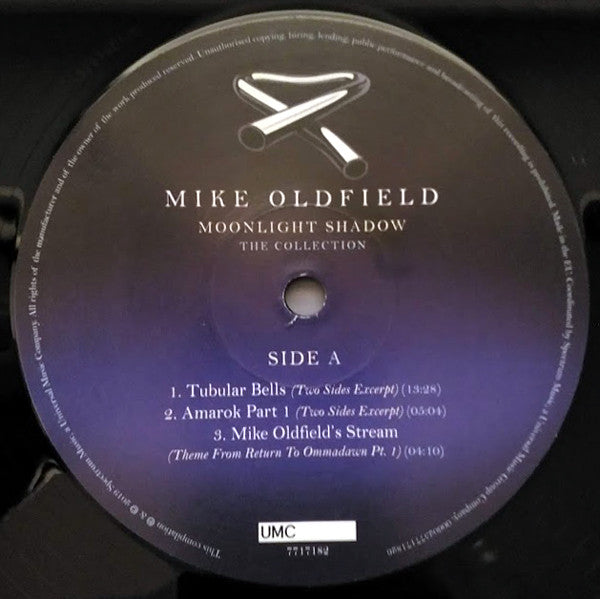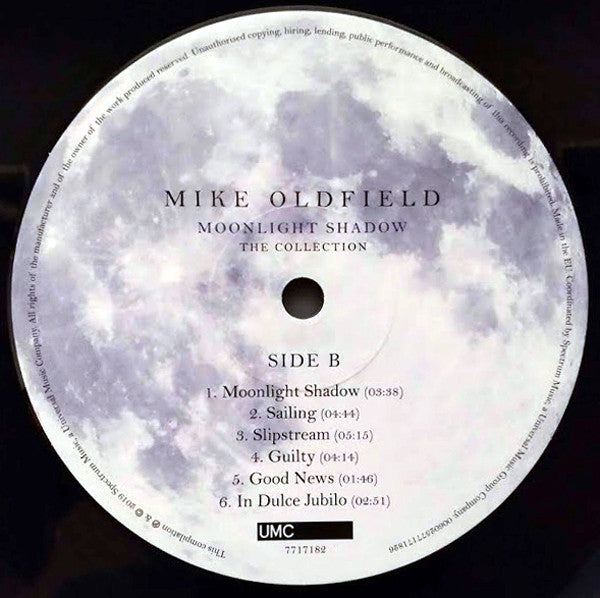 A1. Tubular Bells (Two Sides Excerpt) 13:29 A2. Amarok Part 1 (Two Sides Excerpt) 5:05 A3. Mike Oldfield's Stream (Theme From Return To Ommadawn Pt. 1) 4:10 B1. Moonlight Shadow 3:38 B2. Sailing 4:45 B3. Slipstream 5:15 B4. Guilty 4:13 B5. Good News 1:44 B6. In Dulce Jubilo 2:51