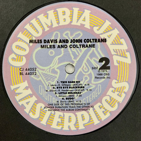 Title listed as "Miles And Coltrane" on spine and centre labels.