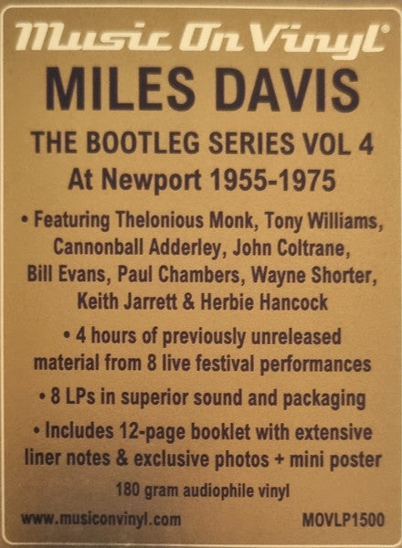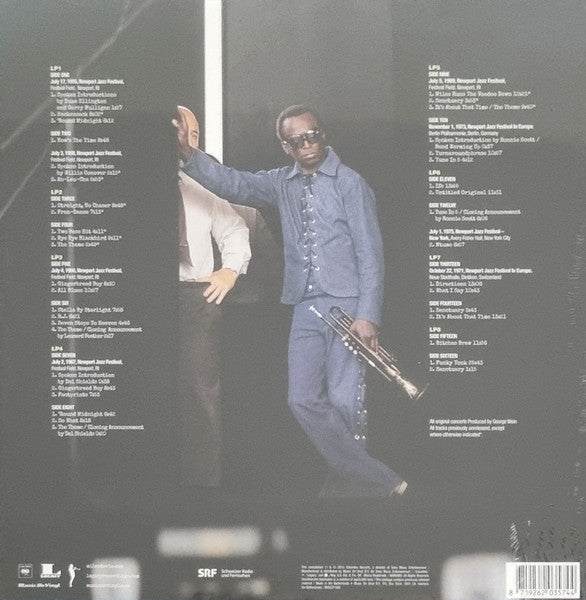 A1. Spoken Introduction By Duke Ellington And Gerry Mulligan 1:27 A2. Hackensack 8:02 A3. Round Midnight 6:12 B1. Now's The Time 8:48 . July 3, 1958, Newport Jazz Festival, Festival Field, Newport, RI B2. Spoken Introduction By Willis Conover 2:15 B3. Ah-Leu-Cha 5:53 C1. Straight No Chaser 8:48 C2. Fran-Dance 7:13 D1. Two Bass Hit 4:11 D2. Bye Bye Blackbird 9:11 D3. The Theme 2:49 . July 4, 1966, Newport Jazz Festival, Festival Field, Newport, RI E1. Gingerbread Boy 8:30 E2. All Blues 10:27 F1. Stella By Starlight 7:58 F2. R.J 6:21 F3. Seven Steps To Heaven 4:46 F4. The Theme / Closing Announcement 2:17 . July 2, 1967, Newport Jazz Festival, Festival Field, Newport, RI G1. Spoken Introduction By Del Shields 0:38 G2. Gingerbread Boy 8:43 G3. Footprints 7:53 H1. Round Midnight 6:42 H2. So What 8:18 H3. The Theme / Closing Announcement By Del Shields 0:20 . July 5, 1969, Newport Jazz Festival, Festival Field, Newport, RI I1. Miles Runs The Voodoo Down 10:21 I2. Sanctuary 3:53 I3. It's About That Time / The Theme 9:40 . November 1, 1973, Newport Jazz Festival In Europe, Berlin Philharmonie, Berlin, Germany J1. Spoken Introduction By Ronnie Scott / Band Warming Up 0:37 J2. Turnaroundphrase 10:57 J3. Tune In 5 4:12 K1. Ife 13:55 K2. Untitled Original 11:31 L1. Tune In 5 / Closing Announcement By Ronnie Scott 6:06 . July 1, 1975, Newport Jazz Festival – New York, Avery Fisher Hall, New York City L2. Mtume 6:57 . October 22, 1971, Newport Jazz Festival In Europe, Neue Stadthalle, Dietikon, Switzerland M1. Directions 13:06 M2. What I Say 10:43 N1. Sanctuary 3:43 N2. It's About That Time 13:21 O. Bitches Brew 11:56 P1. Funky Tonk 25:43 P2. Sanctuary 1:15