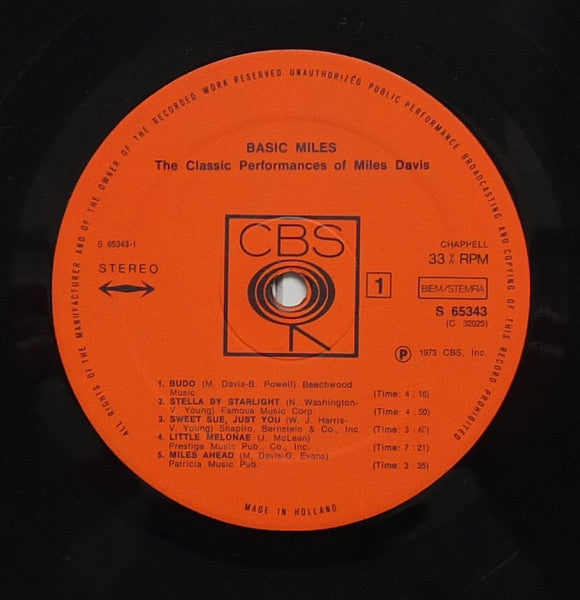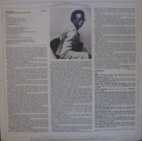 A1. Budo A2. Stella By Starlight A3. Sweet Sue, Just You A4. Little Melonae A5. Miles Ahead B1. On Green Dolphin Street B2. ´Round Midnight B3. Fran-Dance (Put Your Little Foot Right Out) B4. Devil May Care