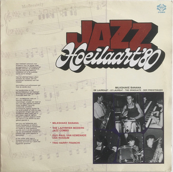 The release collects recordings by the winners of the annual jazz contest organized by Albert Michiels in collaboration with the city council of Hoeilaart and BRT 1. The jury of 1979 consisted of Etienne Verschueren, Armand Van de Walle, Elias Gistelinck and Nicolas Fissette. The first graduate were Milkshake Banana.
