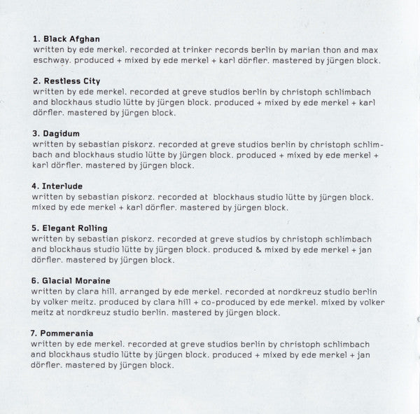 Recorded at Trinker Records Berlin (1 & 8), Greve Studios Berlin (2, 3, 5, 7, 9), Blockhaus Studio Lütte (2, 3, 4, 5, 7, 9) and Nordkreuz Studio Berlin (6)