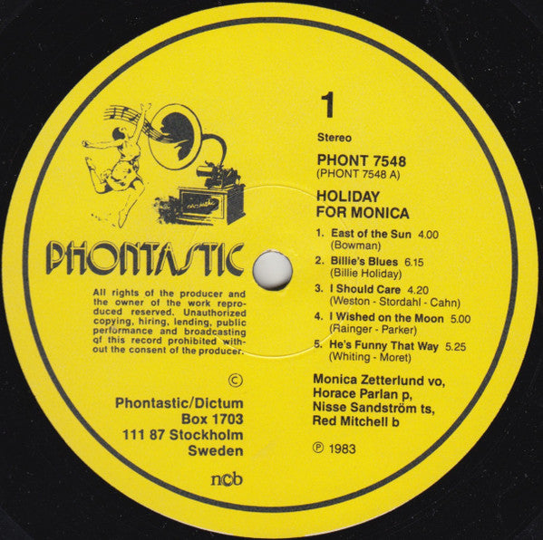 Holiday for Monica är utgiven med Fonogramstöd från Statens Kulturråd.