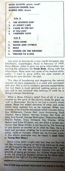 Mose Allison - Creek Bank (LP, Album, Mono, Abb)