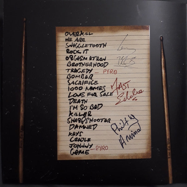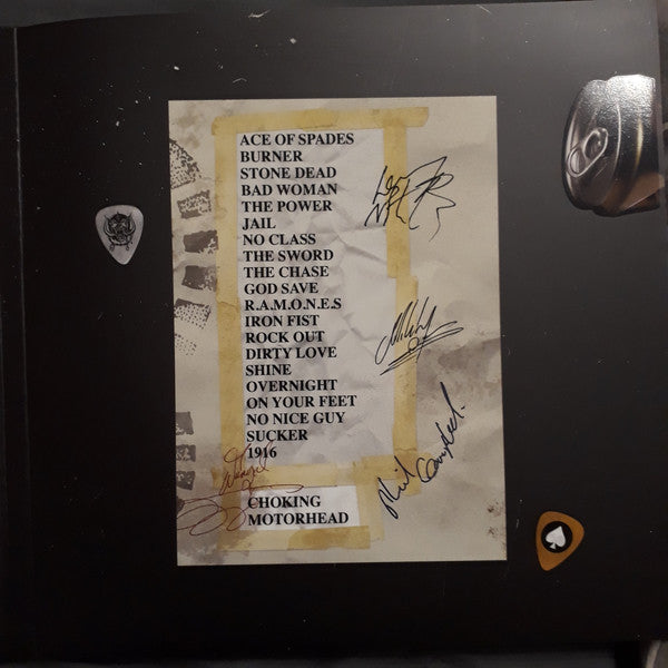 A1. Overkill A2. We Are Motörhead A3. Snaggletooth A4. Rock It A5. Orgasmatron B1. Brotherhood Of Man B2. In The Name Of Tragedy B3. Bomber B4. Sacrifice B5. The Thousand Names Of God C1. Love For Sale C2. Killed By Death C3. I‘m So Bad (Baby I Don‘t Care) C4. Smiling Like A Killer C5. Sharpshooter D1. Queen Of The Damned D2. Keys To The Kingdom D3. Cradle To The Grave D4. Lost Johnny D5. The Game E1. Ace Of Spades E2. Burner E3. Stone Dead Forever E4. Bad Woman E5. Just ‘Cos You Got The Power F1. Stay Out Of Jail F2. No Class F3. I Am The Sword F4. The Chase Is Better Than The Catch G1. God Save The Queen G2. R.A.M.O.N.E.S. G3. Iron Fist G4. Rock Out G5. Dirty Love G6. Shine G7. Overnight Sensation H1. On Your Feet Or On Your Knees H2. I Ain‘t No Nice Guy H3. Sucker H4. 1916 H5. Choking On Your Screams H6. Motörhead