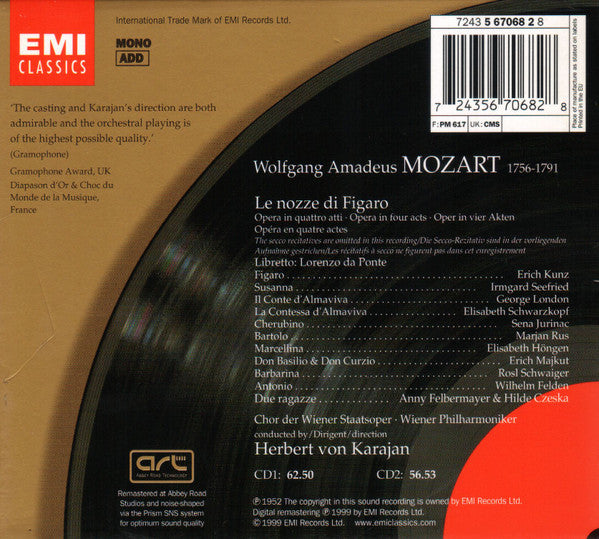 - Erich Kunz • Irmgard Seefried • George London • Elisabeth Schwarzkopf • Sena Jurinac • Wiener Staatsopernchor • Wiener Philharmoniker • Herbert von Karajan