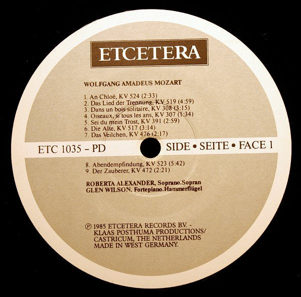 Wolfgang Amadeus Mozart : Roberta Alexander & Glen Wilson - Songs (LP)