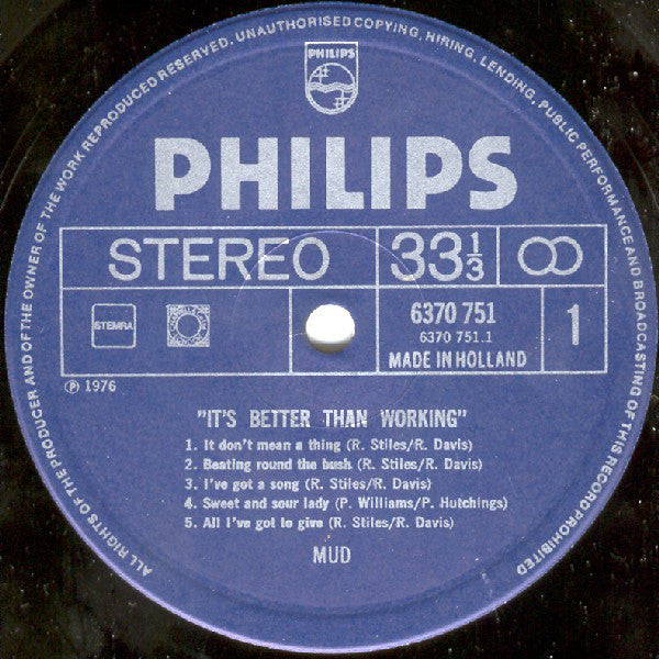 A1. It Don't Mean A Thing A2. Beating Round The Bush A3. I've Got A Song A4. Sweet And Sour Lady A5. All I've Got To Give B1. Nite On The Tiles B2. How Many Times? B3. Don't Talk To Me B4. Blagging Boogie Blues B5. Vambo Rools B6. Moving On