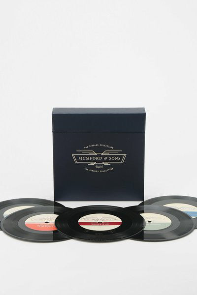 This limited collector's edition housed in a stylish navy blue box, with a hinged lid, contains five (5) 7 inch patterned etched vinyl, each of which is housed in individual bags. Between each record there is a cardboard divider, to separate the records within the box. This is a completely bespoke design, specially made for this collectors edition vinyl box set.