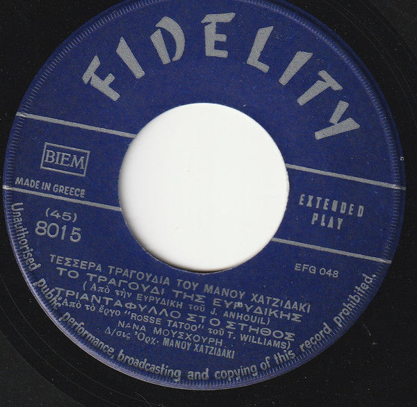 A1. Τα Παιδιά Του Πειραιά A2. Η Προδοσία B1. Το Τραγούδι Της Ευρυδίκης B2. Τριαντάφυλλο Στο Στήθος