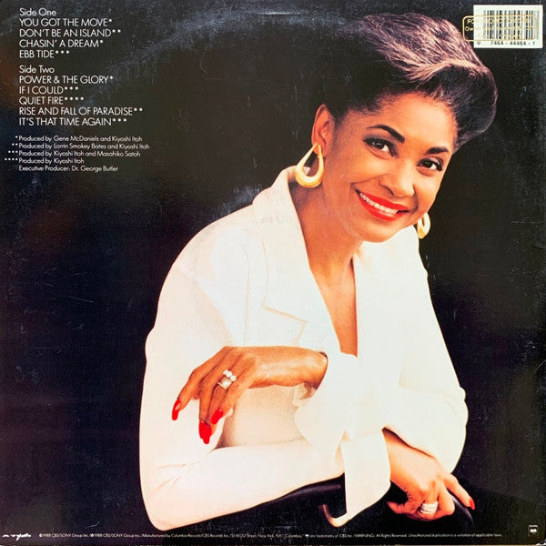 A1. You Got The Move 5:02 A2. Don't Be An Island 5:02 A3. Chasin' A Dream 5:05 A4. Ebb Tide 5:23 B1. Power & The Glory 4:29 B2. If I Could 3:14 B3. Quiet Fire 4:11 B4. Rise And Fall Of Paradise 4:37 B5. It's That Time Again 5:11