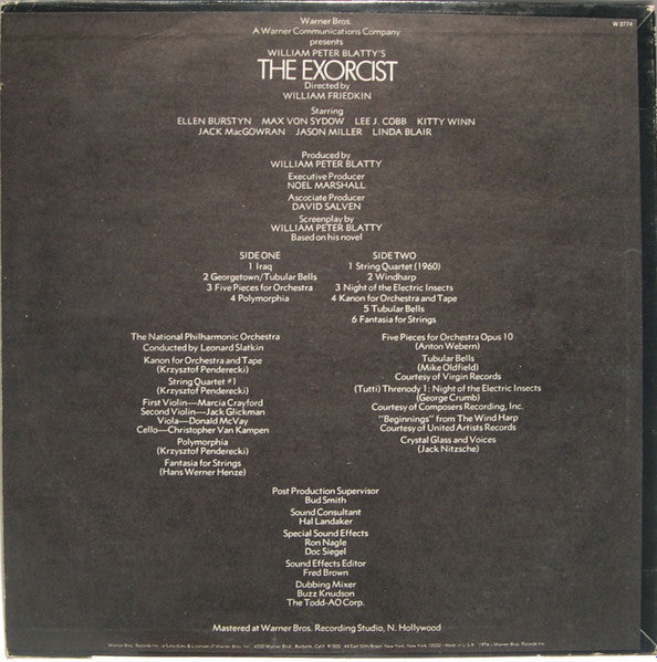A1. Iraq 1:55 A2. Georgetown / Tubular Bells 5:21 A3. Five Pieces For Orchestra, Op.10 (Sehr Langsam Und Äusserst Ruhig) 1:15 A4. Polymorphia 11:43 B1. String Quartet (1960) 7:10 B2. Windharp 2:41 B3. Night Of The Electric Insects 1:33 B4. Kanon For Orchestra And Tape 9:49 B5. Tubular Bells 0:28 B6. Fantasia For Strings 2:10