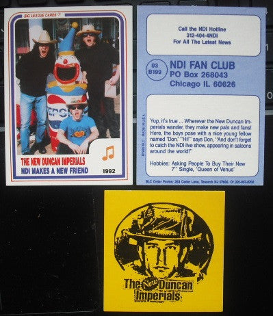 Many copies have fully autographed sleeves with various inserts which may include a band sticker, a NDI 'baseball card', and/or a NDI 'Bowl your Cares Away!' matchbook