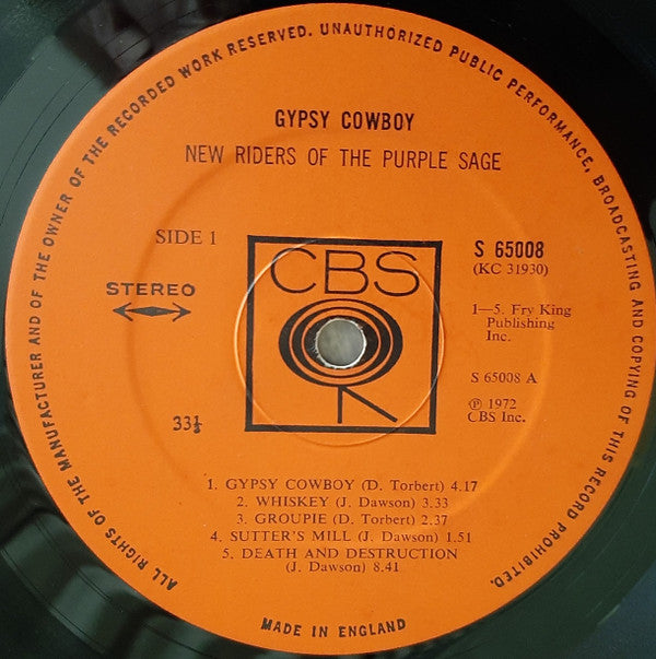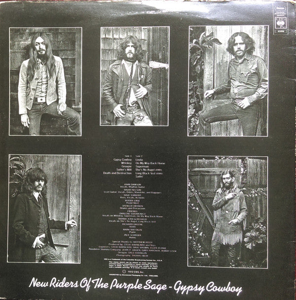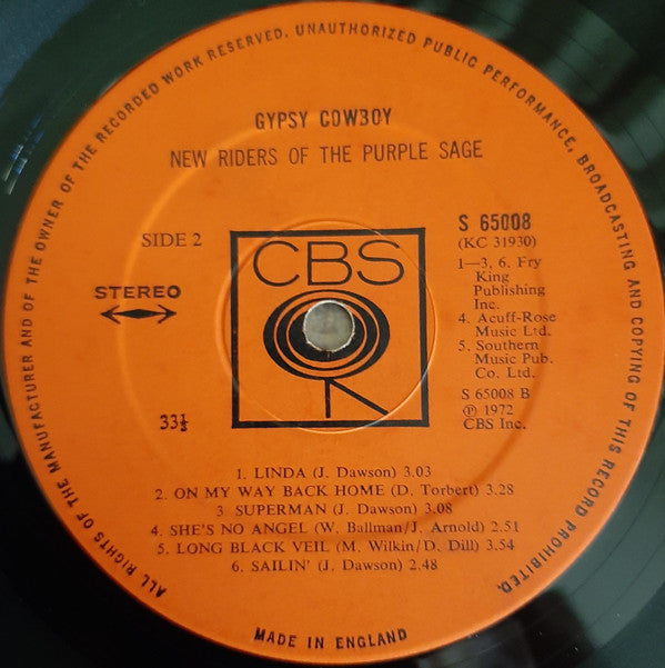 A1. Gypsy Cowboy 4:17 A2. Whiskey 3:33 A3. Groupie 2:37 A4. Sutter's Mill 1:51 A5. Death And Destruction 8:41 B1. Linda 3:03 B2. On My Way Back Home 3:28 B3. Superman 3:08 B4. She's No Angel 2:51 B5. Long Black Veil 3:54 B6. Sailin' 2:48