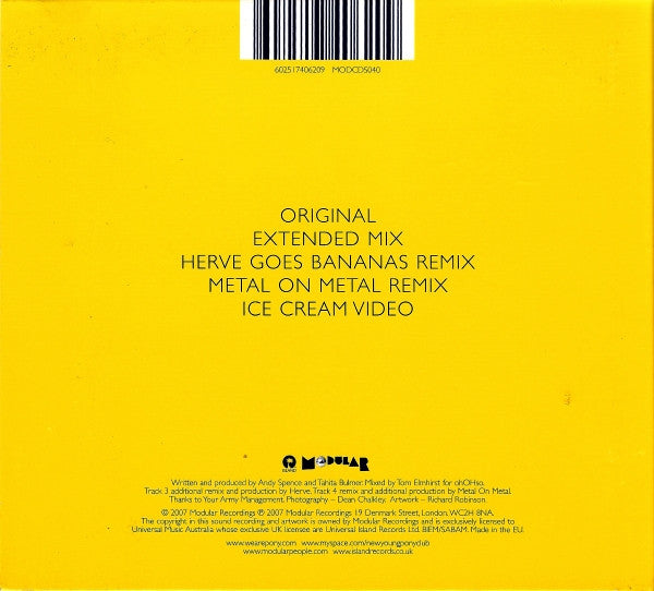 The copyright in this sound recording and artwork is owned by Modular Recordings and is exclusively licensed to Universal Music Australia whose exclusive UK licensee are Universal Island Records Ltd.
