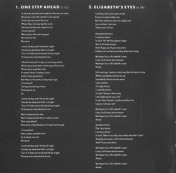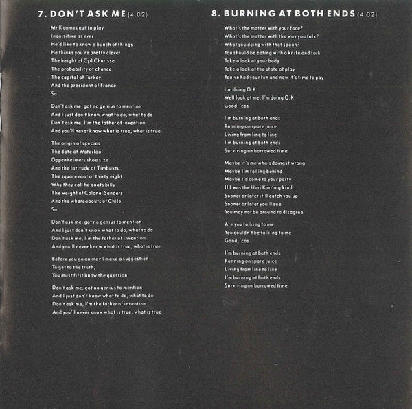 Back cover lists Nik Kershaw and Julian Mendelsohn for mixing and additional production, but in the booklet the both of them are only credited for additional production while Julian Mendelsohn is solely credited for mixing the album.