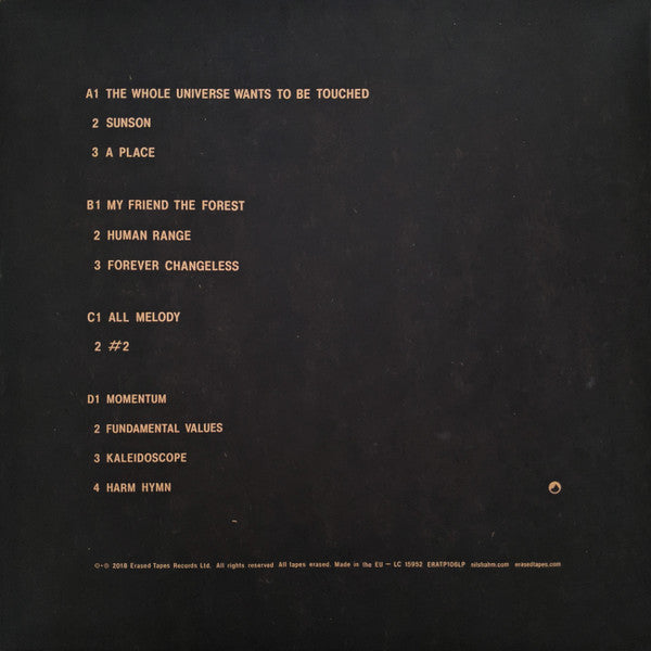A1. The Whole Universe Wants To Be Touched A2. Sunson A3. A Place B1. My Friend The Forest B2. Human Range B3. Forever Changeless C1. All Melody C2. #2 D1. Momentum D2. Fundamental Values D3. Kaleidoscope D4. Harm Hymn