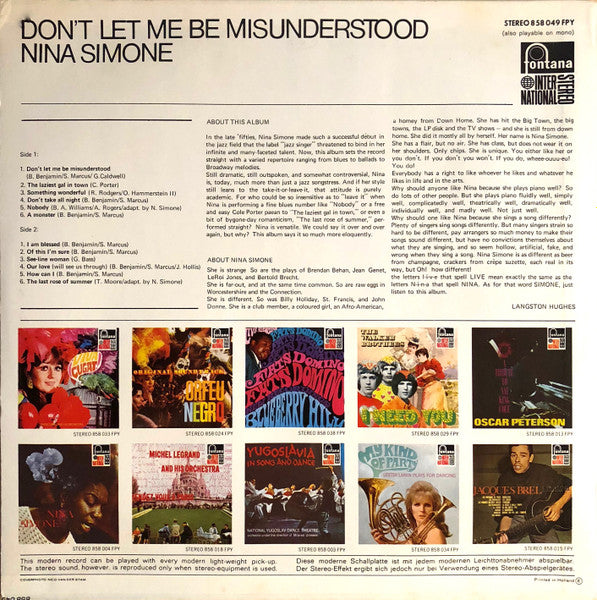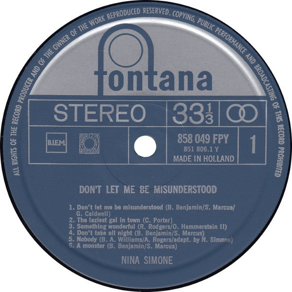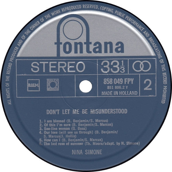 A1. Don't Let Me Be Misunderstood A2. The Laziest Gal In Town A3. Something Wonderful A4. Don't Take All Night A5. Nobody A6. A Monster B1. I Am Blessed B2. Of This I'm Sure B3. See-line Woman B4. Our Love (Will See Us Through) B5. How Can I B6. The Last Rose Of Summer