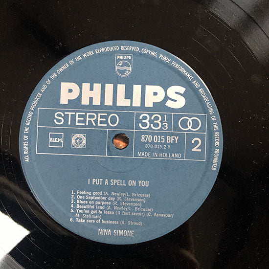 A1. I Put A Spell On You 2:33 A2. Tomorrow Is My Turn 2:43 A3. Ne Me Quitte Pas 3:27 A4. Marriage Is For Old Folks 3:22 A5. July Tree 2:40 A6. Gimme Some 2:58 B1. Feeling Good 2:52 B2. One September Day 2:47 B3. Blues On Purpose 3:18 B4. Beautiful Land 1:55 B5. You've Got To Learn 2:40 B6. Take Care Of Business 2:04