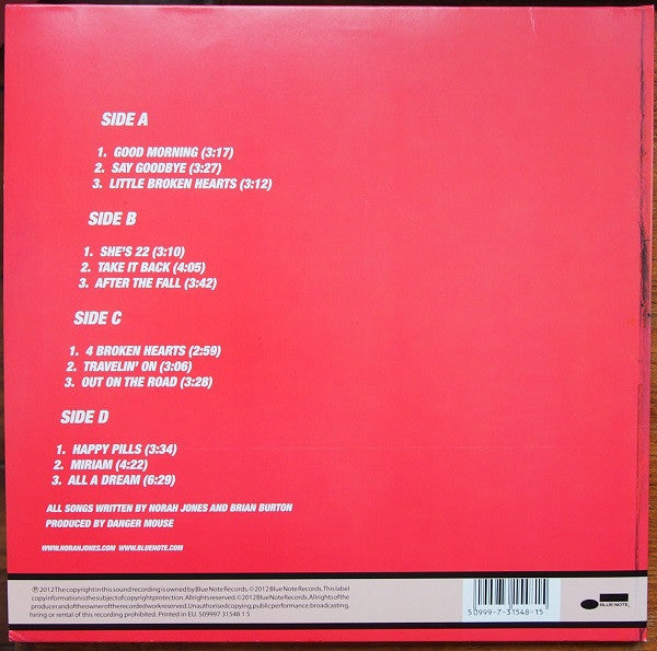 A1. Good Morning 3:17 A2. Say Goodbye 3:27 A3. Little Broken Hearts 3:12 B1. She's 22 3:10 B2. Take It Back 4:05 B3. After The Fall 3:42 C1. 4 Broken Hearts 2:59 C2. Travelin' On 3:06 C3. Out On The Road 3:28 D1. Happy Pills 3:34 D2. Miriam 4:22 D3. All A Dream 6:29
