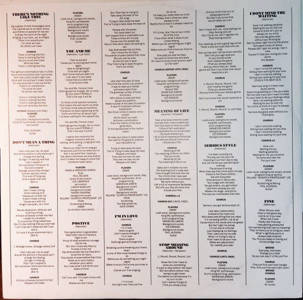 A1. There's Nothing Like This A2. Don't Mean A Thing A3. You And Me A4. Positive A5. I'm In Love B1. Meaning Of Life B2. Stop Messing Around B3. Serious Style B4. I Don't Mind The Waiting B5. Fine (Acapella)