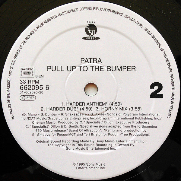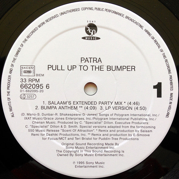 A1. Pull Up To The Bumper (Salaam's Extended Party Mix) 4:46 A2. Pull Up To The Bumper (Bumpa Anthem) 4:09 A3. Pull Up To The Bumper (Lp Version) 4:50 B1. Pull Up To The Bumper (Harder Anthem) 4:59 B2. Pull Up To The Bumper (Harder Dub) 4:59 B3. Pull Up To The Bumper (Horny Mix) 3:58