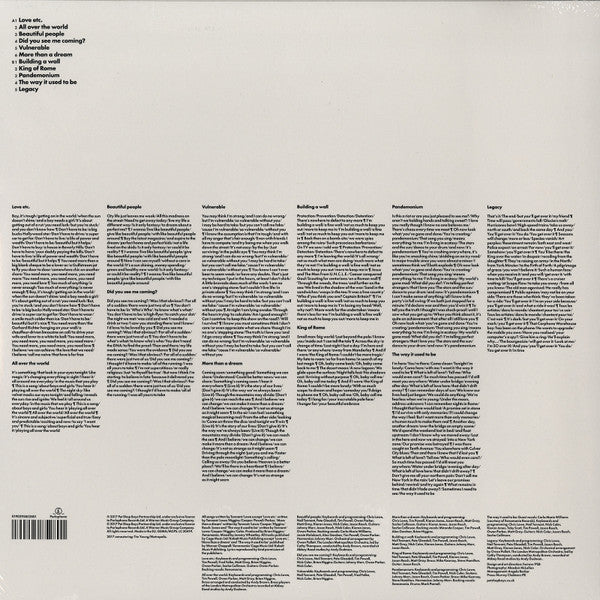 A1. Love Etc. A2. All Over The World A3. Beautiful People A4. Did You See Me Coming? A5. Vulnerable A6. More Than A Dream B1. Building A Wall B2. King Of Rome B3. Pandemonium B4. The Way It Used To Be B5. Legacy