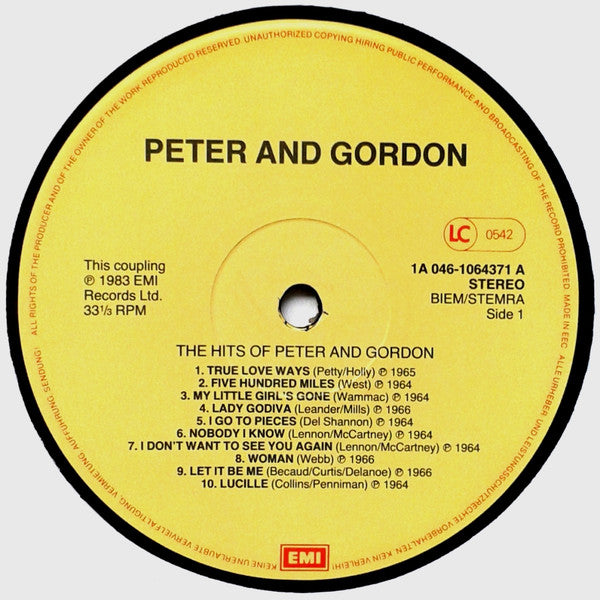 A1. True Love Ways A2. Five Hundred Miles A3. My Little Girl's Gone A4. Lady Godiva A5. I Go To Pieces A6. Nobody I Know A7. I Don't Want To See You Again A8. Woman A9. Let It Be Me A10. Lucille B1. World Without Love B2. Crying In The Rain B3. Hurtin' Is Loving B4. To Know You Is To Love You B5. Someone Ain't Right B6. You've Had Better Times B7. Baby I'm Yours B8. Exodus Song B9. High Noon (Do Not Forsake Me)