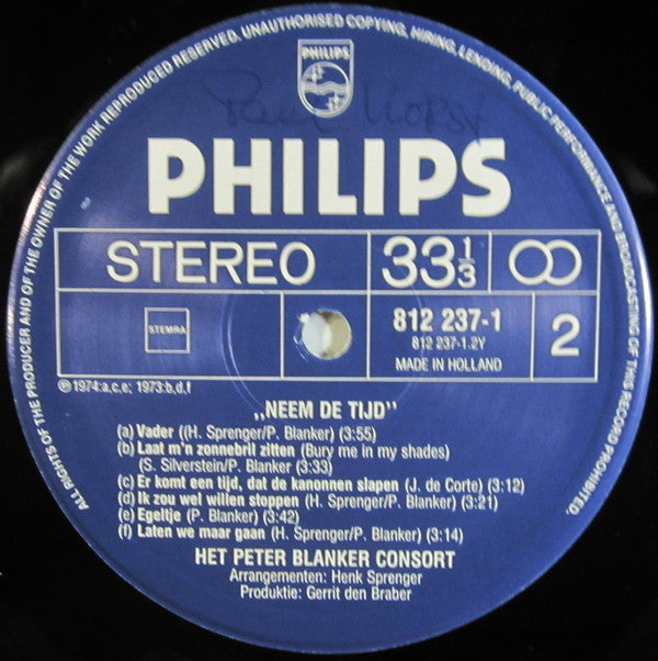 Peter Blanker Consort - Neem De Tijd (LP, Album)